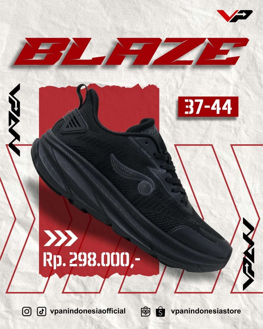 Sepatu Sekolah VP Blaze All Black / Black White size 37-44