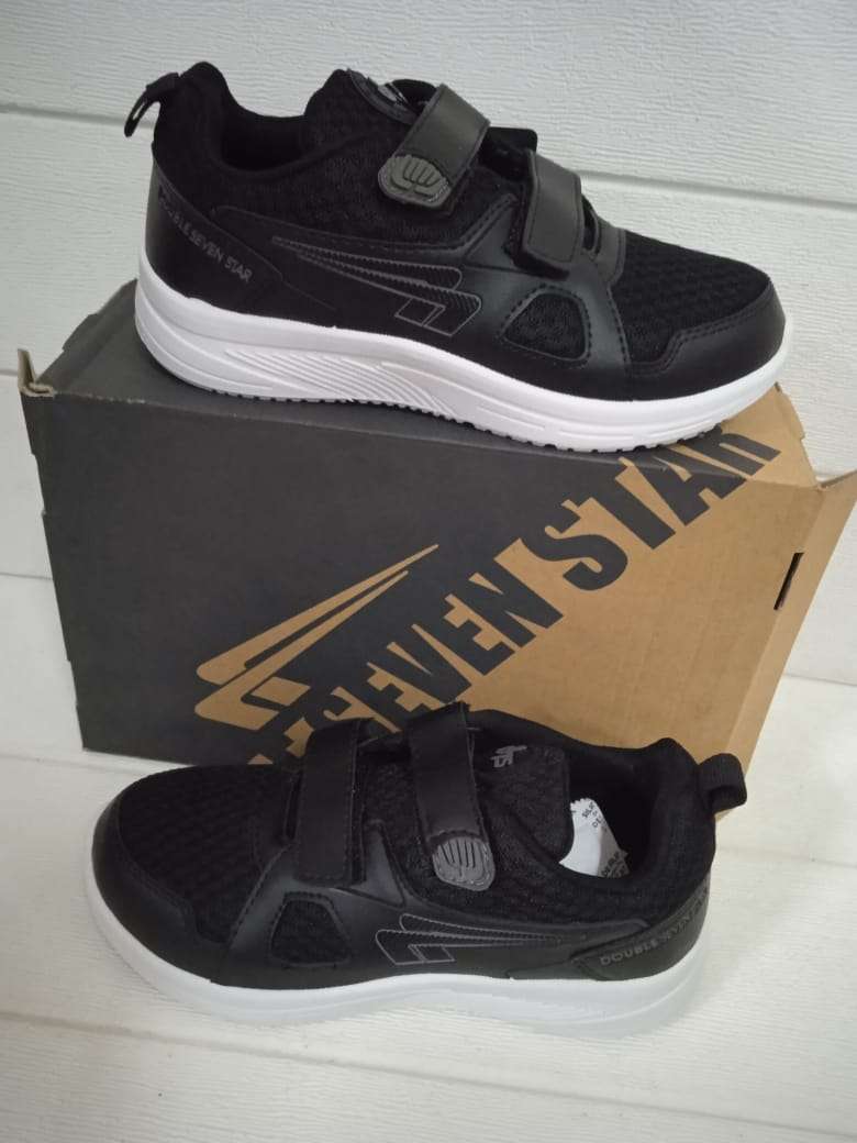 sepatu doubel seven model rekatan warna hitam putih uk 31-34