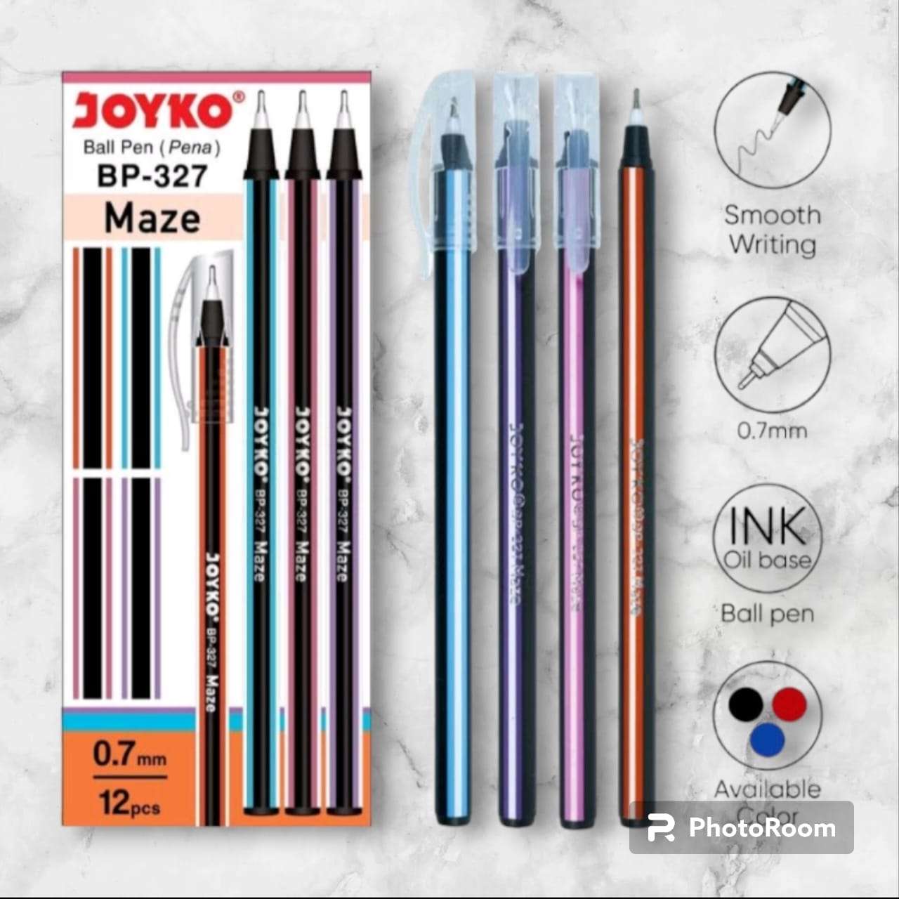 pulpen joyko menggunakan tinta hitam dan kualitas sudah sangat teruji.mata pen 0.7 yg akan membuat tulisan menjadi rapi.